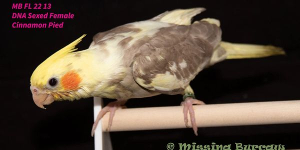 A pied cockatiel is a mixture of colors and cannot be visually sexed unless they are also expressing a form of sex link gene (cinnamon, pearl or lutino). They can have a lot of white or a little white. They can have "dirty face" markings or clear faces and/or cheek patches. These birds are a lot of fun to play with, genetically speaking! They can be mixed with pretty much any morph. They can also be so high white that they appear to be a white lutino, the trick to tell them apart is the eye color. An all-white or "clear" pied will have black eyes, a lutino will have red/ruby/or lighter eyes.