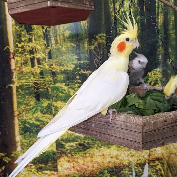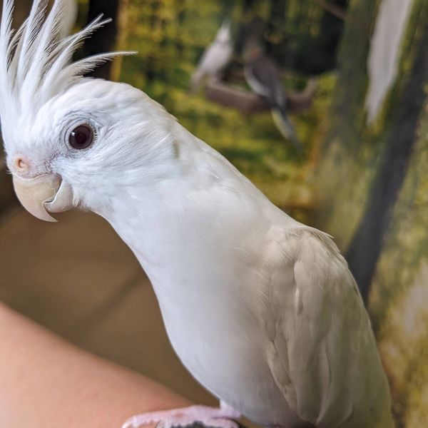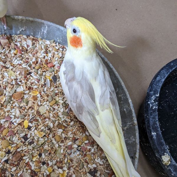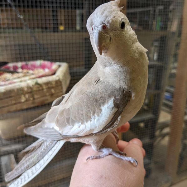 Cinnamon is a fun gene to play around with and birds can be darker or lighting depending on how much sunlight they get-no joke! Chicks are also born with ruby or red eyes, but their eyes get darker than an adult lutino as they grow up.