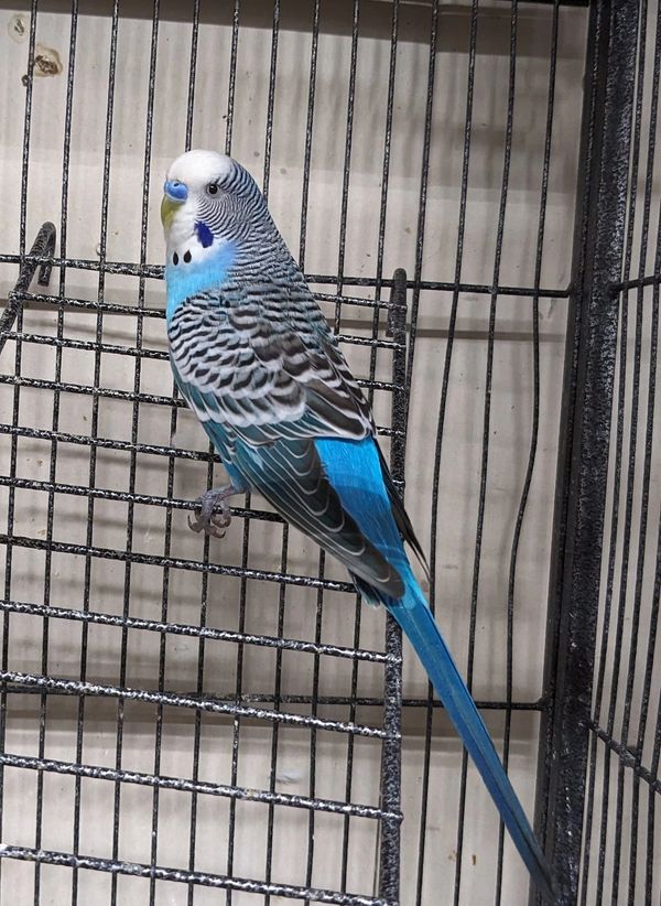 I took in a pair of older parakeets and had 1 die. So I got the remaining one a friend. A few months later the older one joined his lost mate. I currently have 4 parakeets. These are pets only. They do not have names. 2 came from local pet stores, 1 was given to me by a co-worker who took it from a random lady walking around with it in a tiny cage, and 1 was found in a box left on the doorstep of the wildlife rescue I was volunteering for. The one shown in the photo is the blue male that was left in a box, with no note, on the doorstep of the rescue.