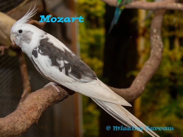 Mozart had been the oldest bird in my flock. He came to me in 2013 and passed away in the winter of 2024. You will see many photos of him throughout my site and Facebook page. He was a loyal companion but sadly never left any offspring behind. I was never sure of his exact age because his leg band had been damaged before I got him. But the last couple of years of his life he had been acting and looking like a very old bird. He will be greatly missed.