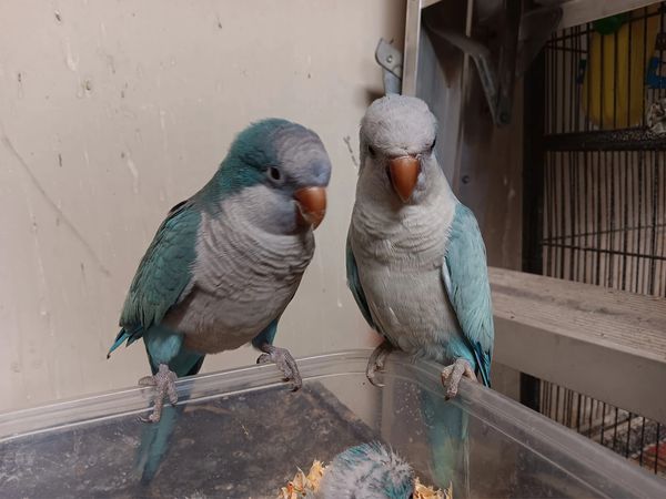 I have 1 pair of quakers named Syl and Kal. Quakers can be very rough on other birds, so for the safety of the rest of the flock, they have their cage in the bird room and are allowed out to explore under supervision. Visitors are not allowed to interact with the adult quakers as they do bite!